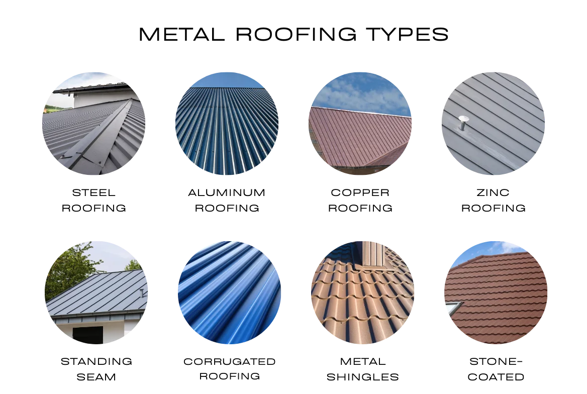 Metal roofing types fall into two categories: panel styles (how it looks and installs) and materials (what it’s made of).